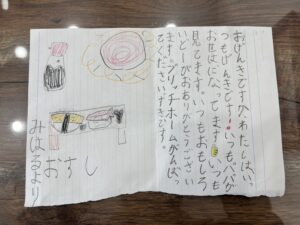 Youtubeをご覧いただいているお子様よりお手紙頂きました。